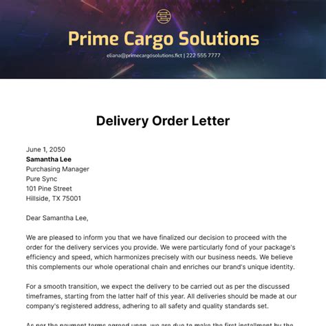 Delivery Order Request Letter . Get free business letter samples and writing stuff via your email: Each letter is crafted for different situations and types of material requests, ensuring.