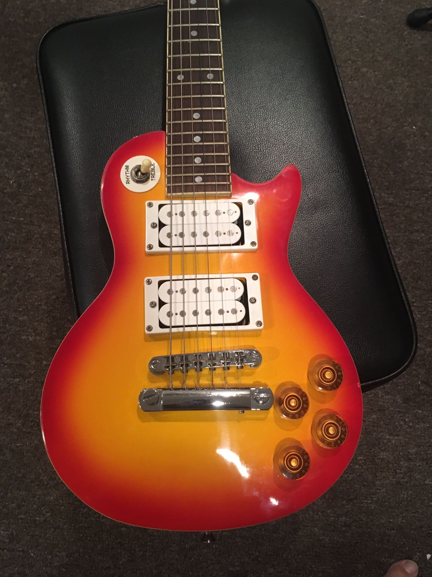 Mini Les Paul Guitar . Straight neck, action is set low, electronics work properly, not much. These little guitars are so much fun to play!